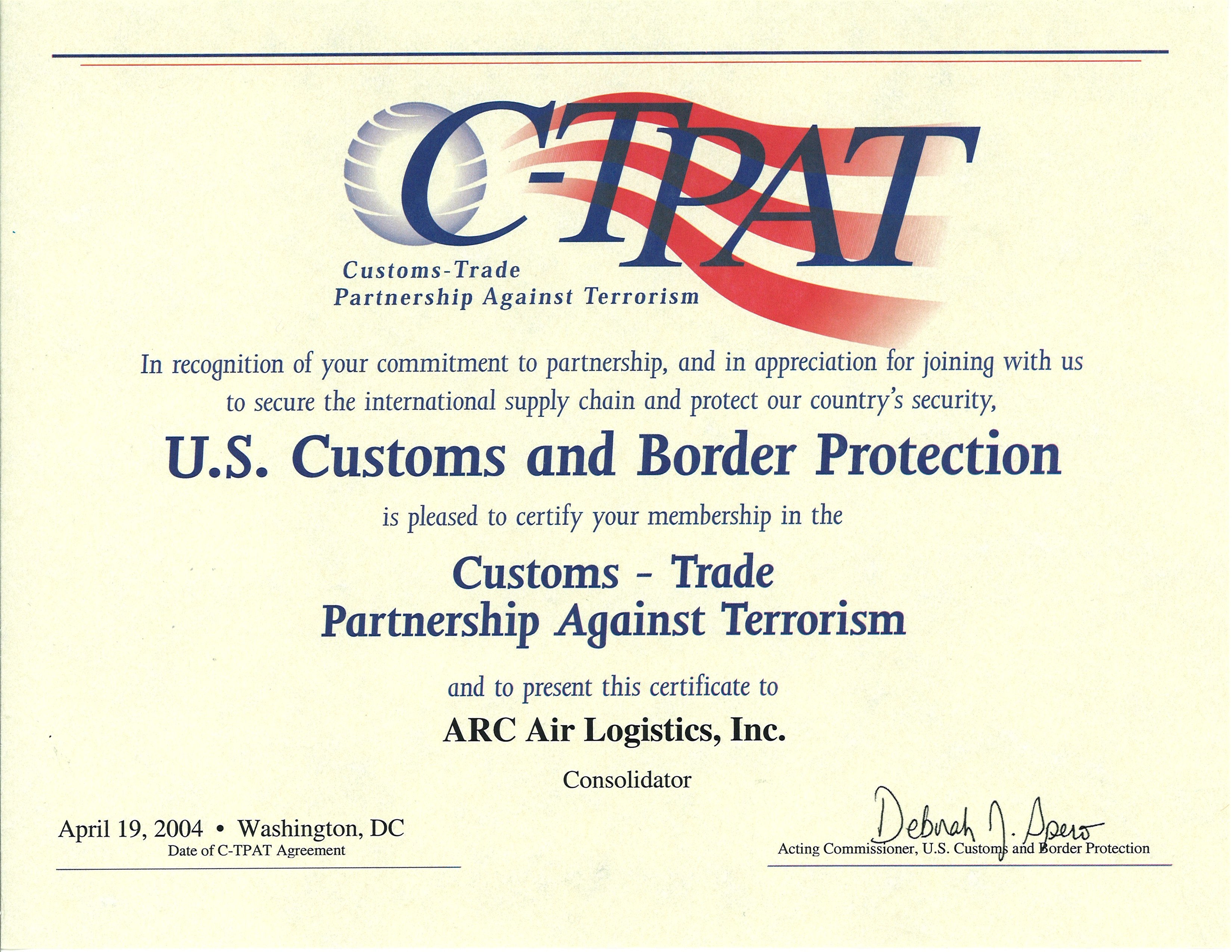 We are also a VALIDATED member of Customs Trade partnership against Terrorism (C-TPAT) and we work closely with our worldwide partners to ensure security for our country, and for your international supply chains.